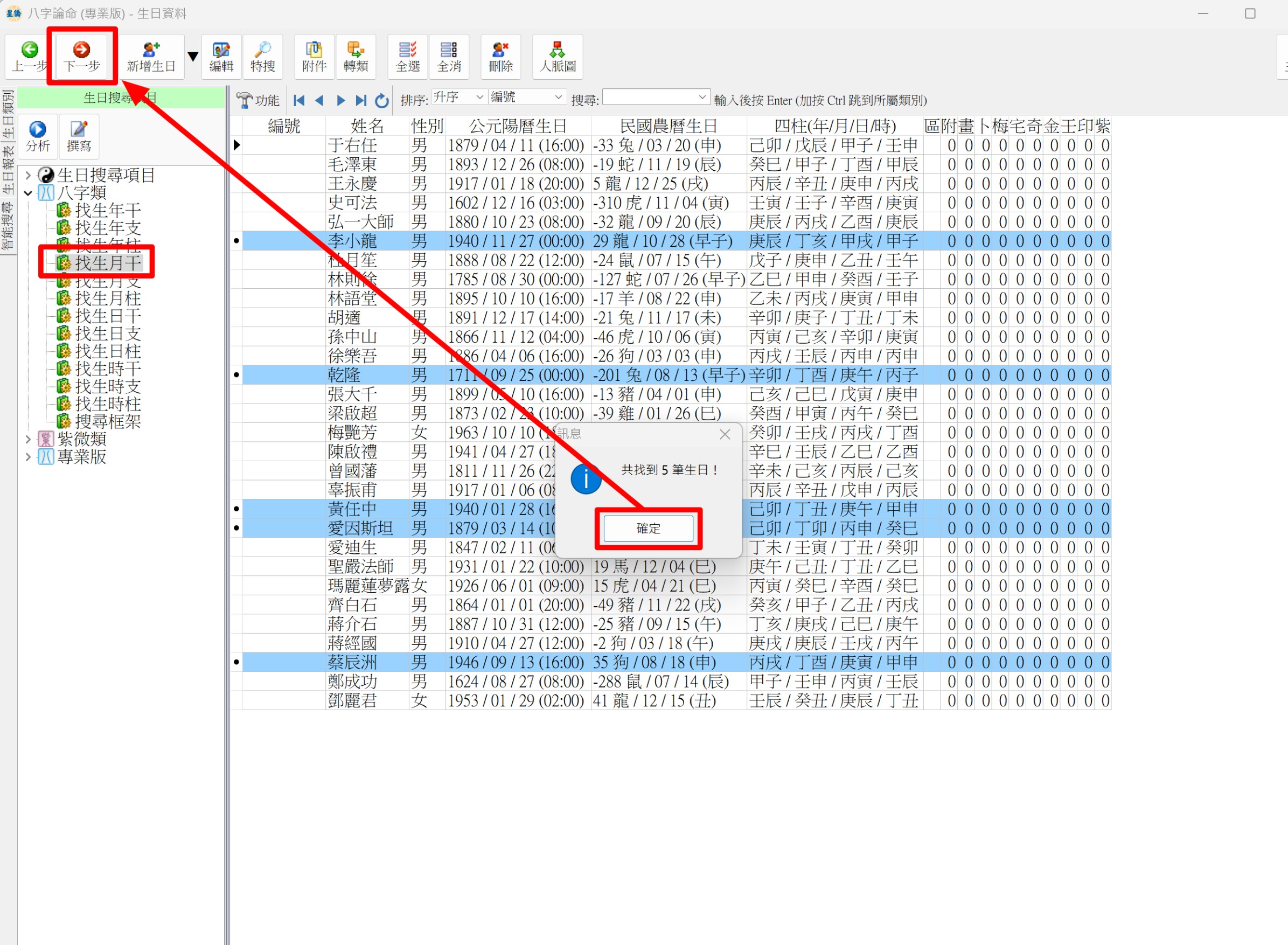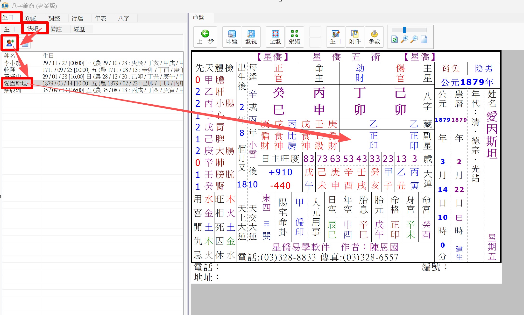 NCC-900 星僑五術 生日快取操作 發佈日期: 2019 年 09 月 03 日 作者: nccsoft 快取操作: 1. 在生日管理先複選生日 (非命盤頁) 2. 按下一步到命盤頁, 左上角切到快取頁, 按 [+] 可將剛才複選的生日加入快取生日 3. 如果還需要再加入其它類別生日, 可在此命盤頁, 左上切到生日, 選好生日, 再加入快取 除了可以自己用 Ctrl 去複選,還可以用搜尋的方式,選出多個生日,再加到快取