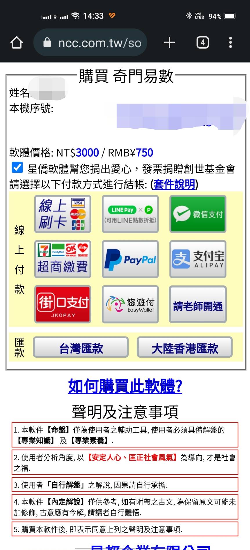 先進到「八字論命」點「解析」,到套件下載「奇門易數」,再點「命理項目-奇門易數」,就會自動轉到購買的頁面