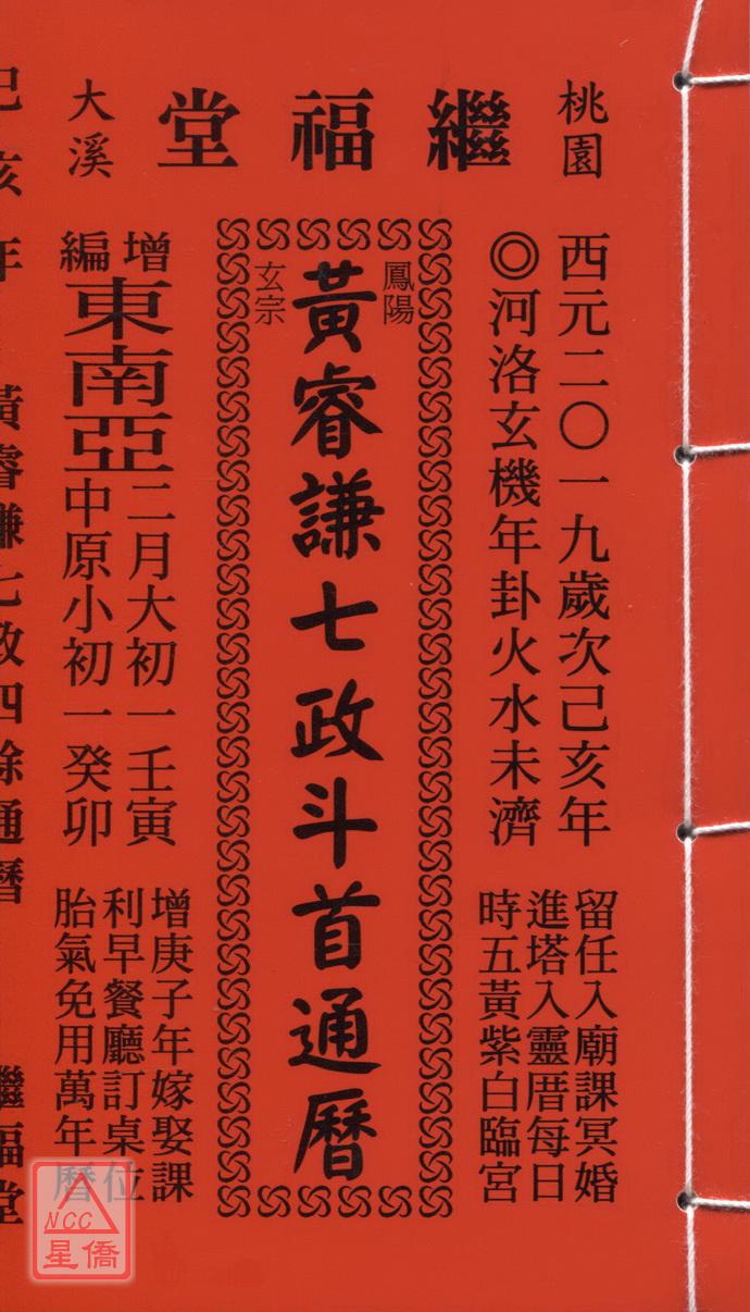 2019黃睿謙七政四餘通曆(平本通書)【民國108年】