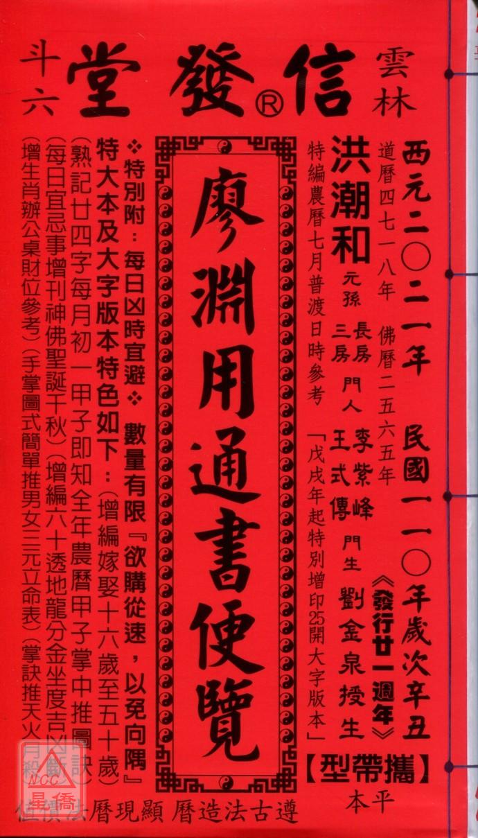 2021廖淵用通書便覽(平本)【民國110年】